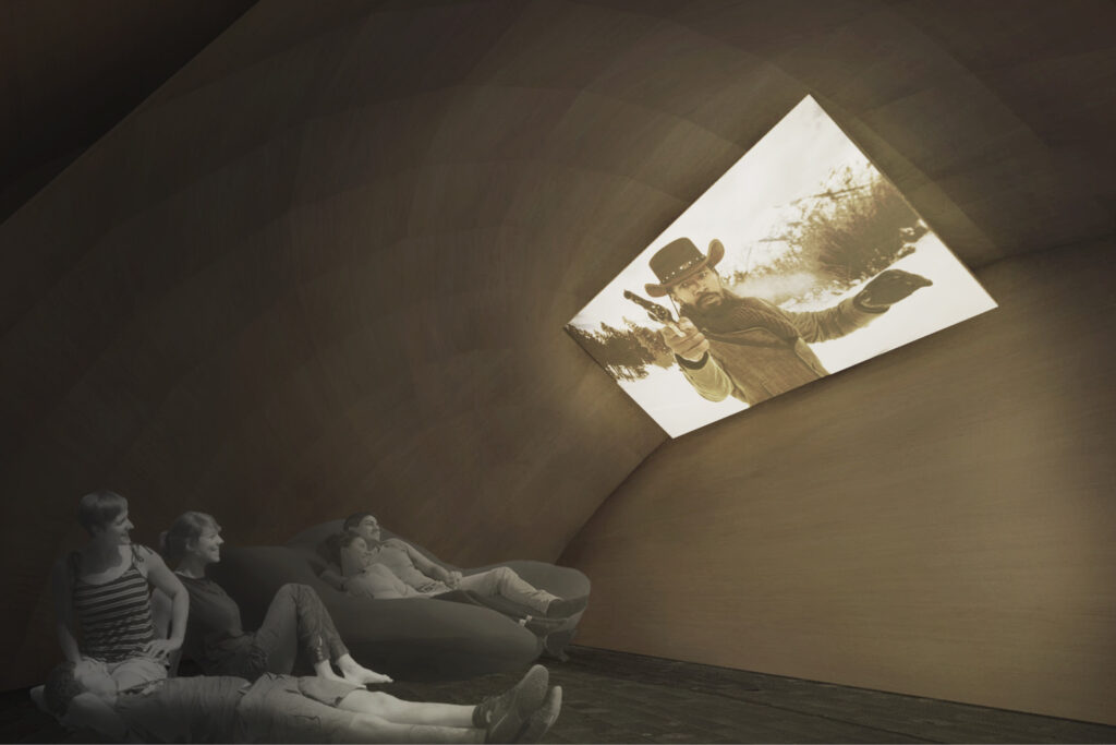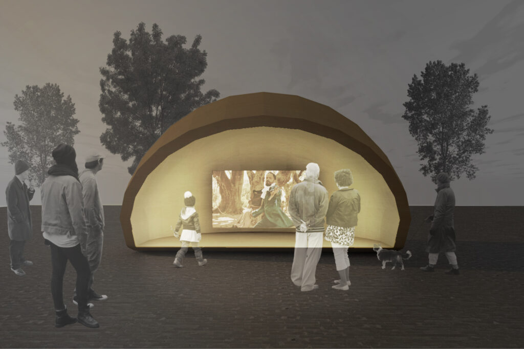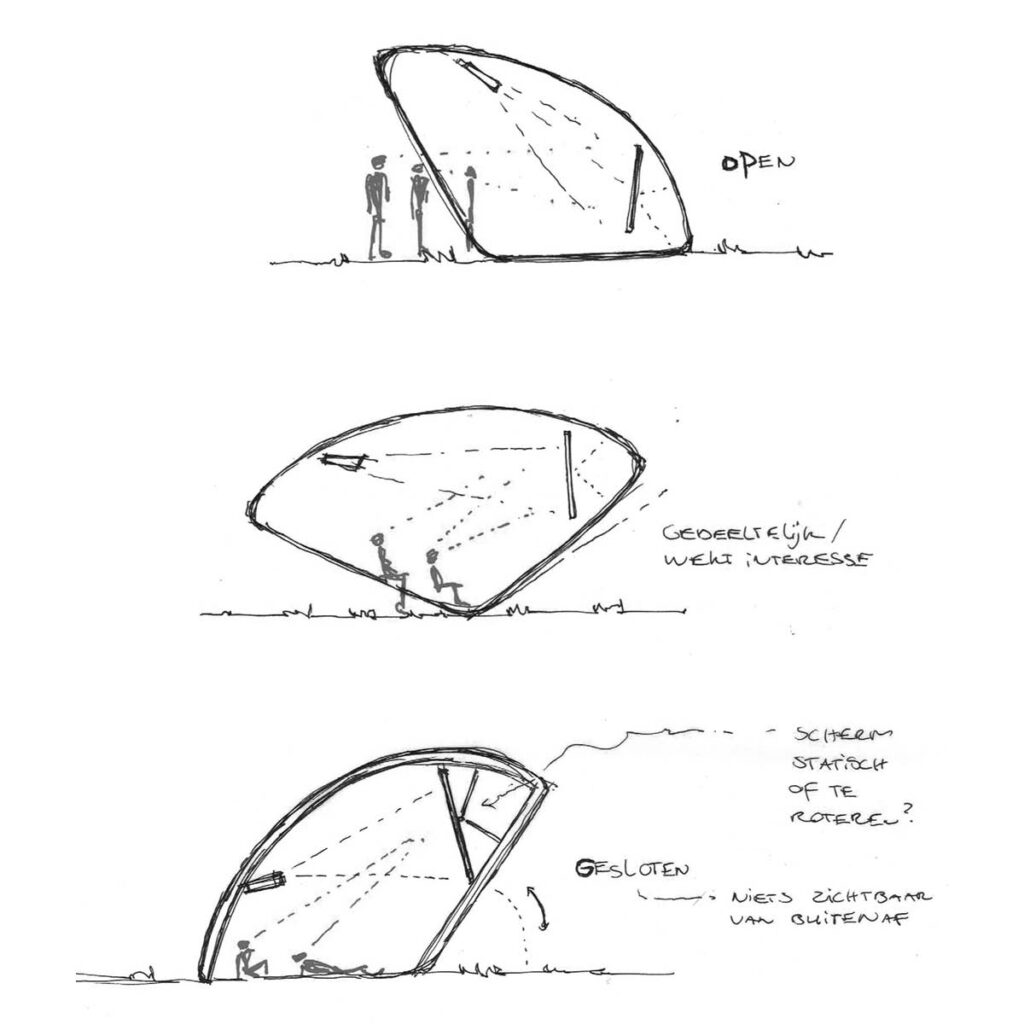 ‘The Eye’ is vormgegeven volgens de criteria herkenbaarheid en diversiteit. Herkenbaarheid volgens de vorm van het object, die een spreekwoordelijke knipoog geeft naar de zintuigelijke waarneming zien. Diversiteit betreffende de verschillende manieren waarop men de voorstelling kan aanschouwen. De mobiele cinema biedt de optie de setting van de film of documentaire eenvoudig te veranderen, waardoor wordt ingespeeld op de lengte en het karakter van de voorstelling. De cinema kent de standen open, half open en dicht, waarbij de toeschouwer staand, zittend of liggend van de voorstelling kan genieten.