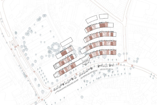 Gelegen aan een drukke doorgaande weg kent deze karakteristieke jaren ’30 woning toch enige geborgenheid in de oksel van de naburige bebouwing. Het woonhuis beschikt momenteel over een minimale dialoog tussen de woonruimtes en de riante oprit en achtertuin. Daarnaast bevindt de huidige badkamer zich naast de keuken en dienen twee van de drie slaapkamers op de verdieping als doorloop. Een grootschalige renovatie biedt de mogelijkheid voor een optimalere indeling en verduurzaming van het pand. De dienende functies zoals het toilet, berging en de keuken vouwen zich rondom de nieuwe trap die in het midden van de woning geplaatst wordt. Daardoor is het mogelijk het contact tussen de keuken en achtertuin te vergroten, en voor te sorteren op een toekomstige uitbreiding aan de oostzijde.